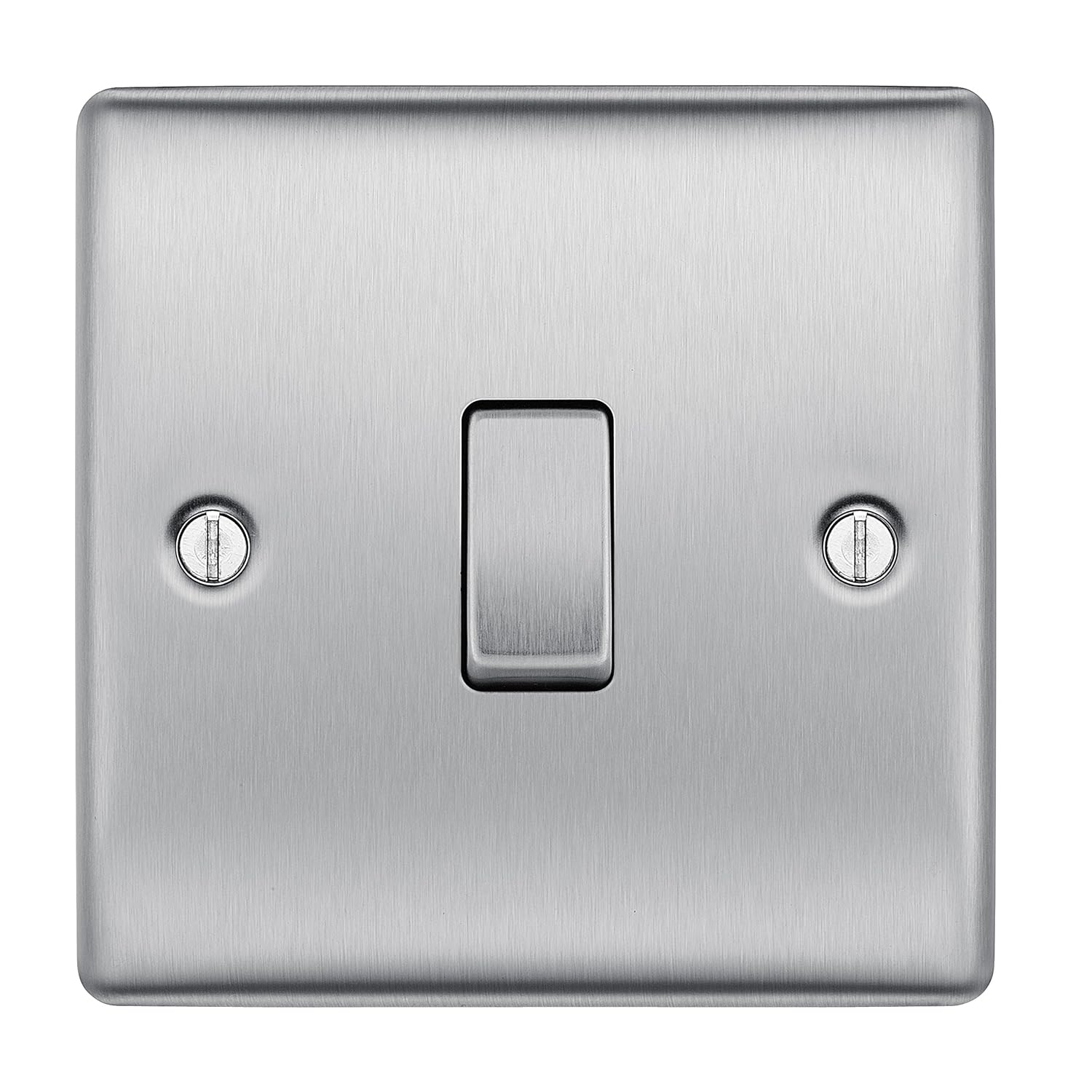 Bg Electrical Nbs12 01 10ax Single Two Way Metal Brushed Stainless Steel Light Switch Screwed